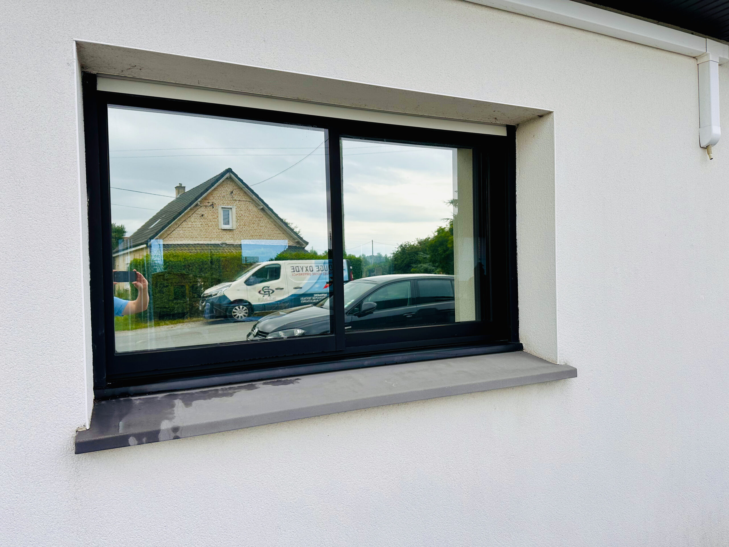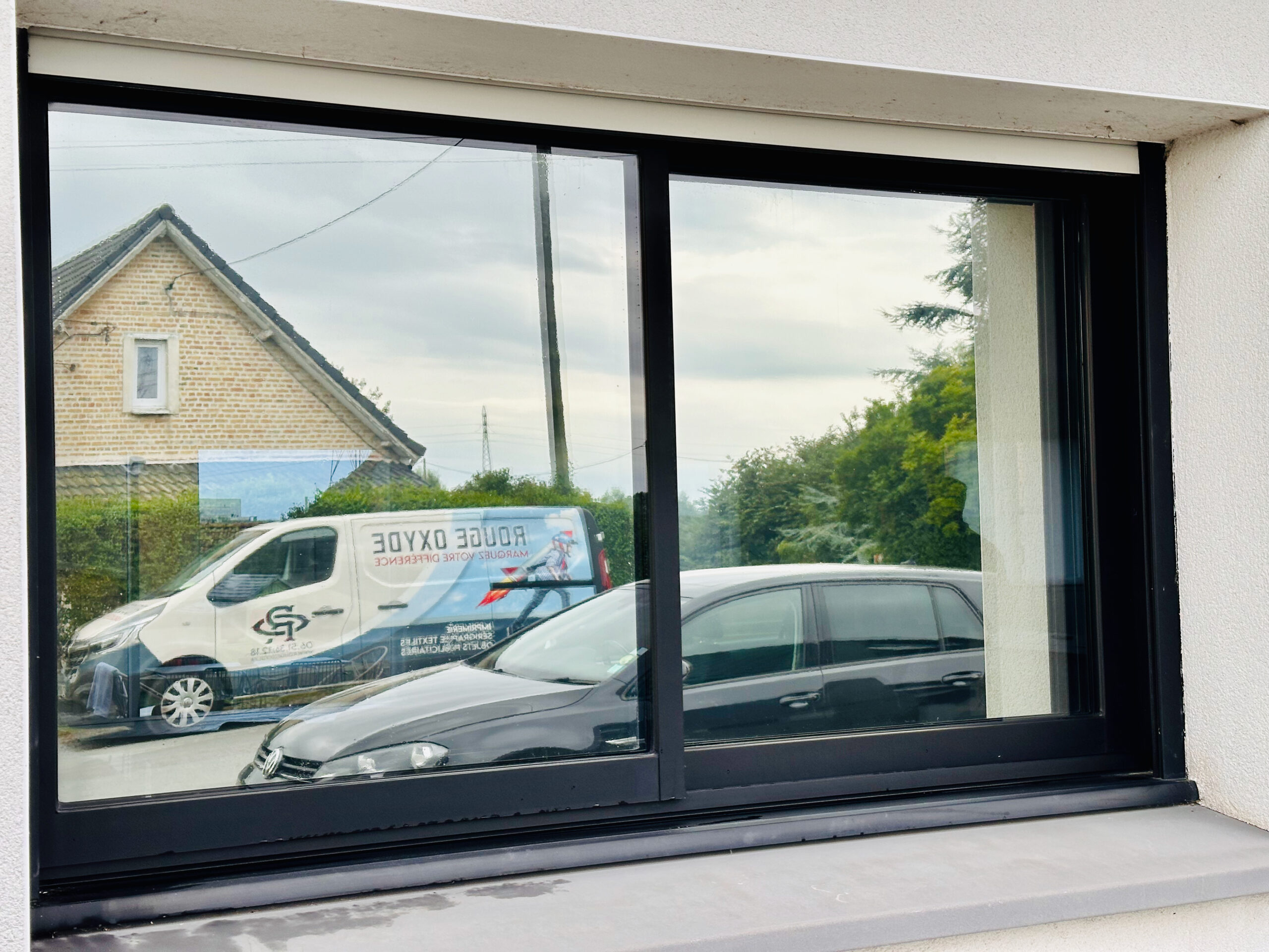 Résultat d'application de film solaire sur vitrage - © rouge oxyde 2026 -